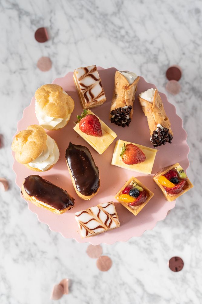 Delicate pate a choux dough filled with freeds Bavarian cream and topped with homemade fudge icing. Individual eclair.